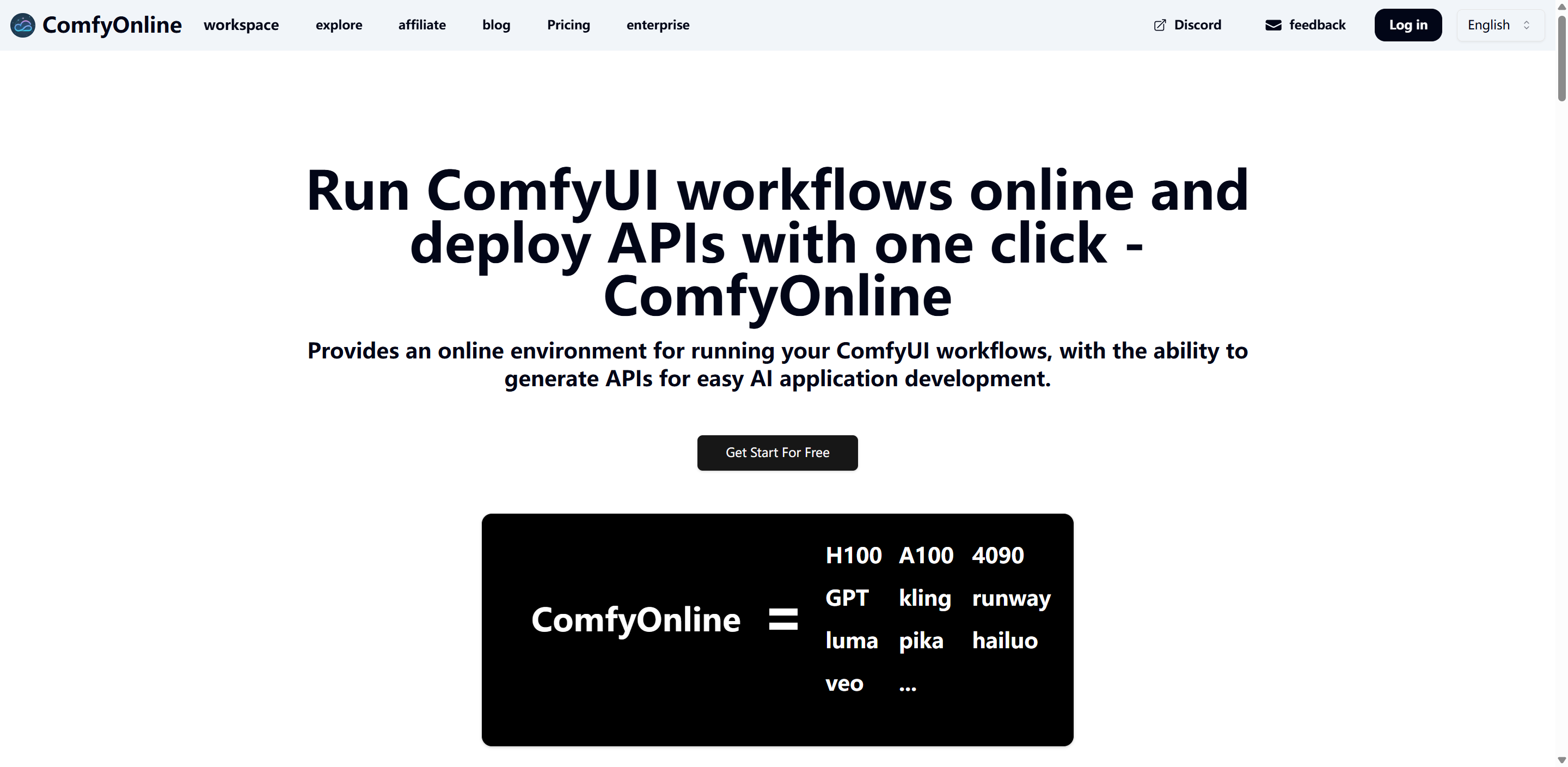 ComfyOnline 是一个云端平台,专为运行 ComfyUI 工作流设计,提供了更友好、性价比更高的使用体验。使用 ComfyOnline,您只需为实际工作流的运行时间付费,避免了闲置 GPU 的费用。