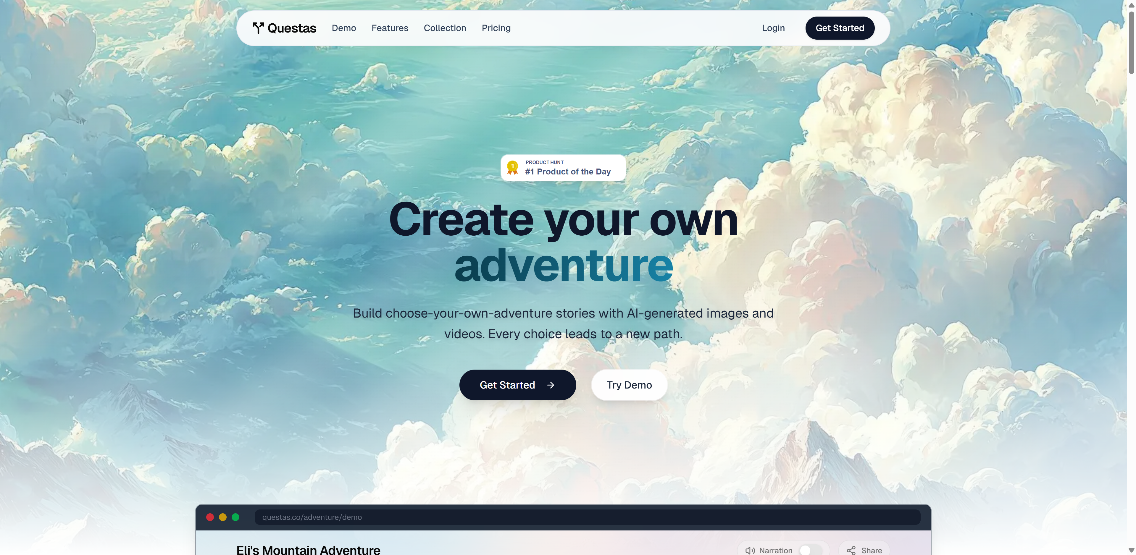Questas 是一个面向大众创作者的互动故事平台。它结合生成式 AI 与可视化工具,让用户无需编程或美术基础,也能在几分钟内构建"选择你的冒险"式的故事。