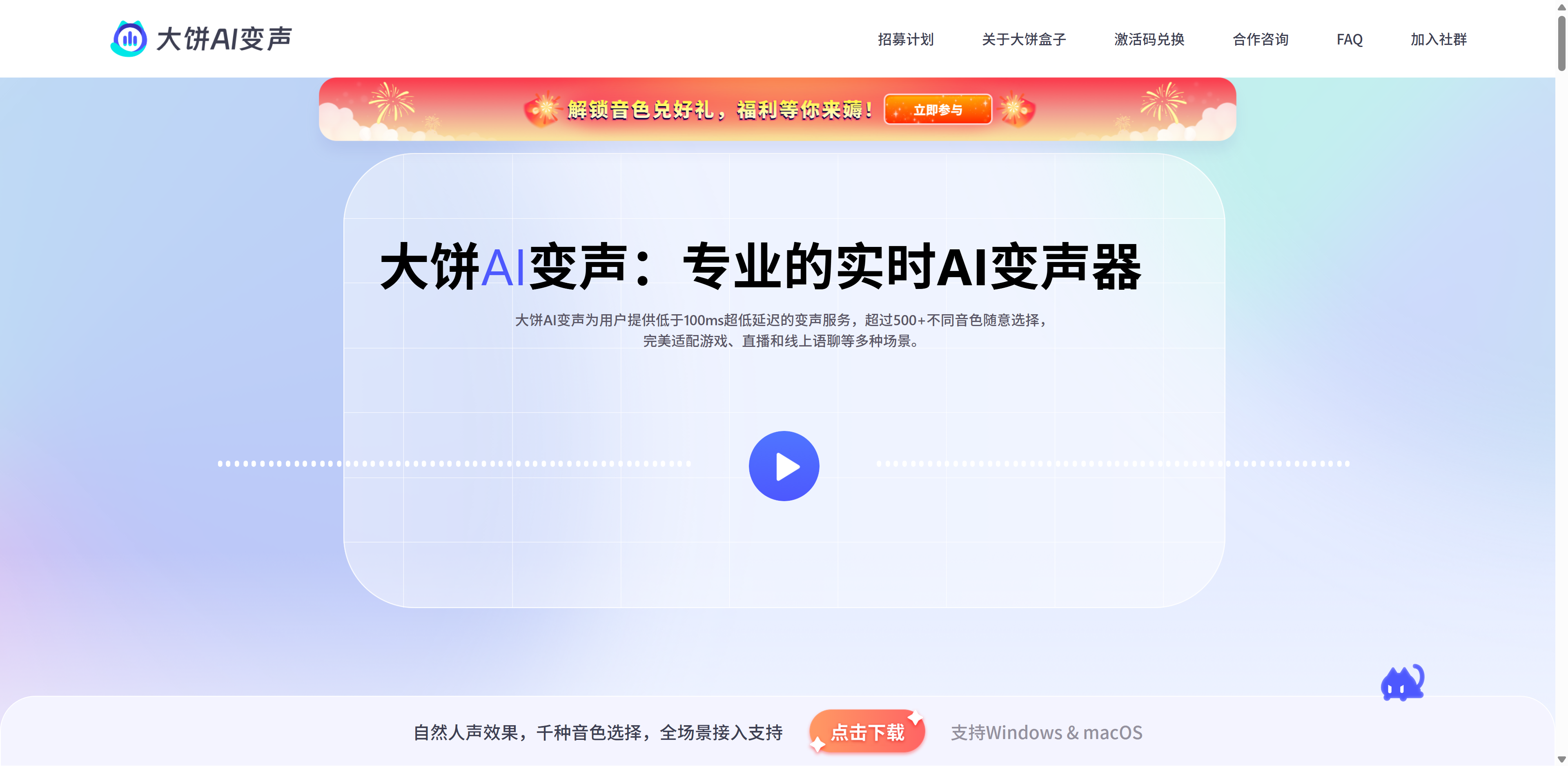 大饼AI变声是一款免费专业的AI变声软件,支持一键实时语音变声。平台提供多种声音效果和变声模式,适合直播、游戏和娱乐等场景的语音变声需求。