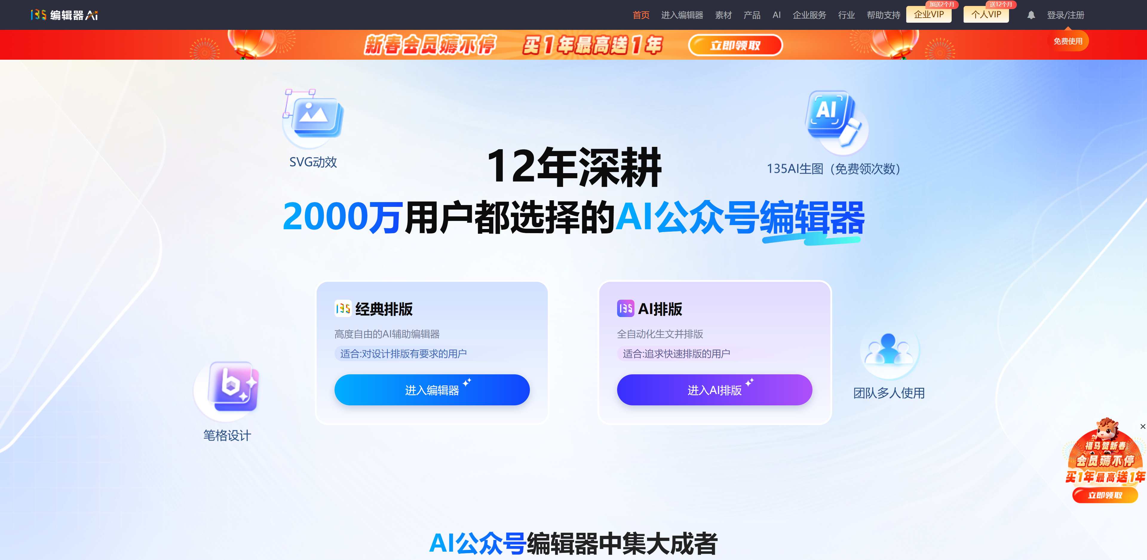 135 AI排版是一款公众号AI图文排版和智能文案生成工具,帮助用户快速完成微信公众号文章的排版设计。平台支持AI智能排版和文案生成,适合新媒体运营人员。