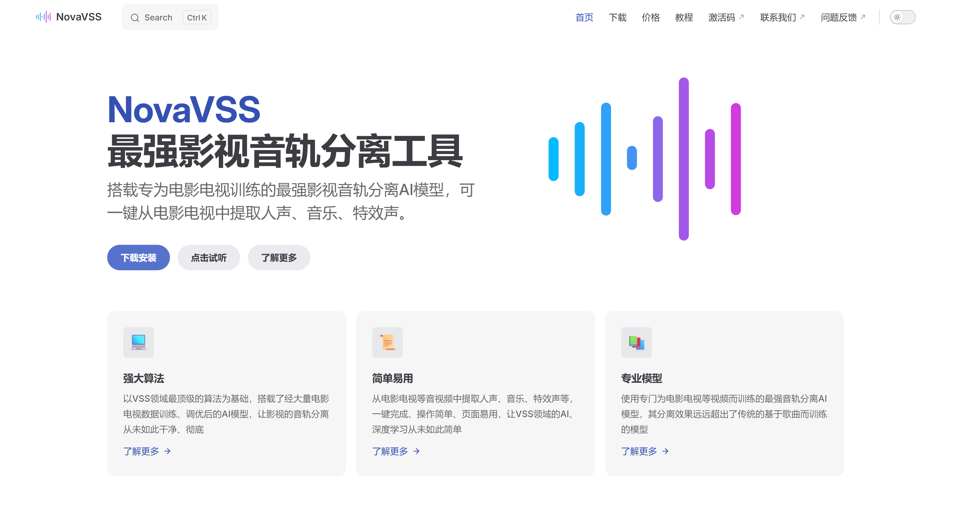 NovaVSS是一款专注于影视音轨分离的AI工具,专为影视后期、音乐制作和内容创作者设计。该平台搭载了专为电影电视训练的顶级AI模型,能够一键从视频或音频中精准提取人声、背景音乐和特效声,其分离效果和纯净度远超UVR5等传统方案。网站操作简单,用户只需上传文件、点击处理即可完成。它支持MP4、MKV、FLV及MP3、WAV、FLAC等多种主流音视频格式,并具备强大的批量处理和GPU加速能力,可高效处理上千个文件。此外,平台提供内置音频播放器供即时预览,并支持自定义输出路径与格式。NovaVSS提供免费体验版(10天)和专业版(16.8元/月),专业版支持更高品质输出如WAV、FLAC及专业技术支持。用户还可通过QQ社区交流,是一款高效、专业的智能音轨分离解决方案。